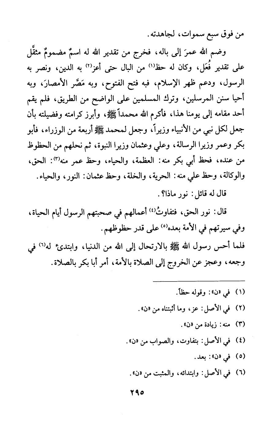 قال: نور الحق، فتفاوت أعمالهم في صحبتهم الرسول أيام الحياة، وفي سيرتهم في الأمة بعده على قدر حظوظهم.