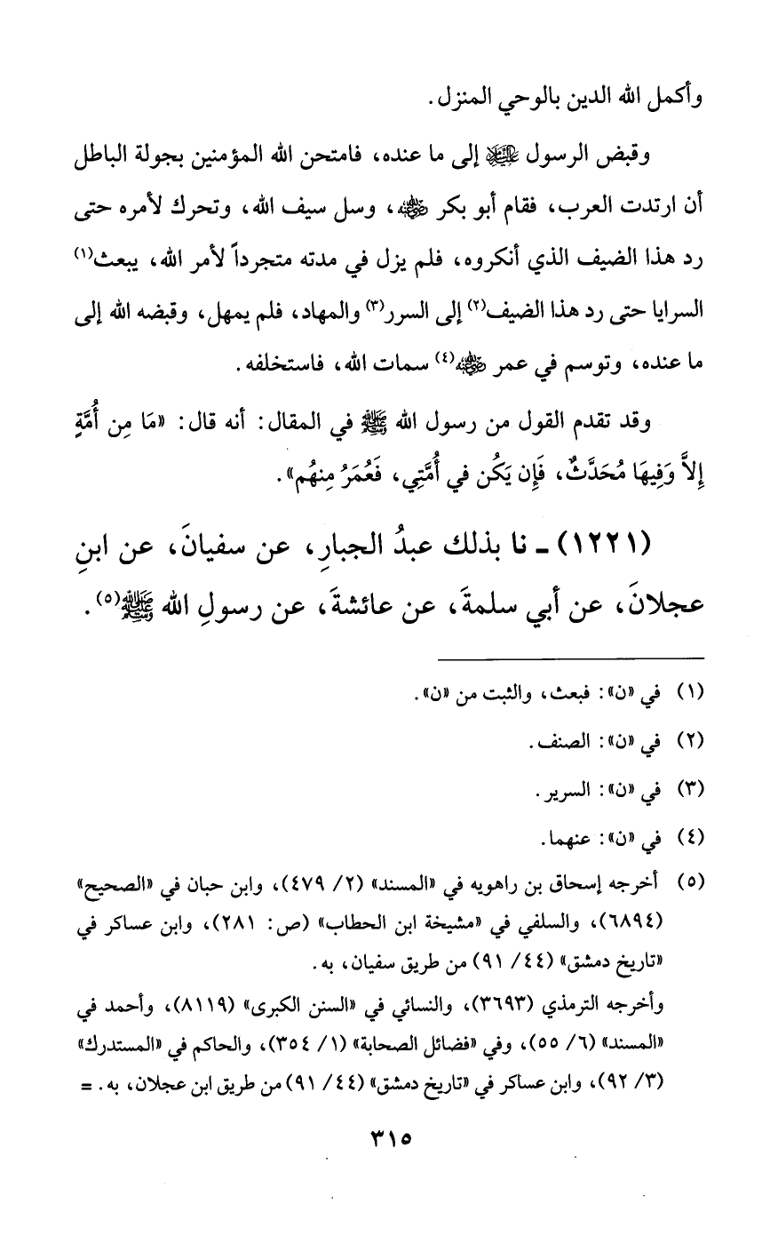 1221 - نا بذلك عبد الجبار، عن سفيان، عن ابن عجلان، عن أبي سلمة، عن عائشة، عن رسول الله صلى الله عليه وسلم.