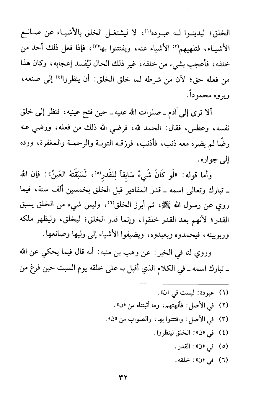 الخلق؛ ليدينوا له عبودة، لا ليشتغل الخلق بالأشياء عن صانع الأشياء، فتلهيهم الأشياء عنه، ويفتتنوا بها، فإذا فعل ذلك أحد من خلقه، فأعجب بشيء من خلقه، غير ذلك الحال ليفسد إعجابه، وكان هذا من فعله حق؛ لأن من شرطه لما خلق الخلق: أن ينظروا إلى صنعه، ويروه محموداً.