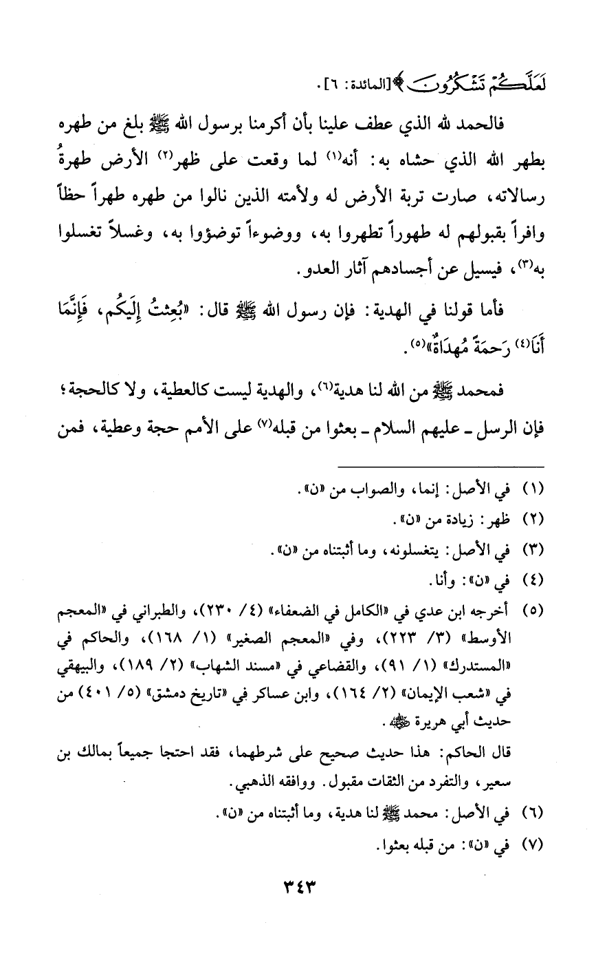 فأما قولنا في الهدية: فإن رسول الله صلى الله عليه وسلم قال: ((بعثت إليكم، فإنما أنا رحمةً مهداةٌ)).