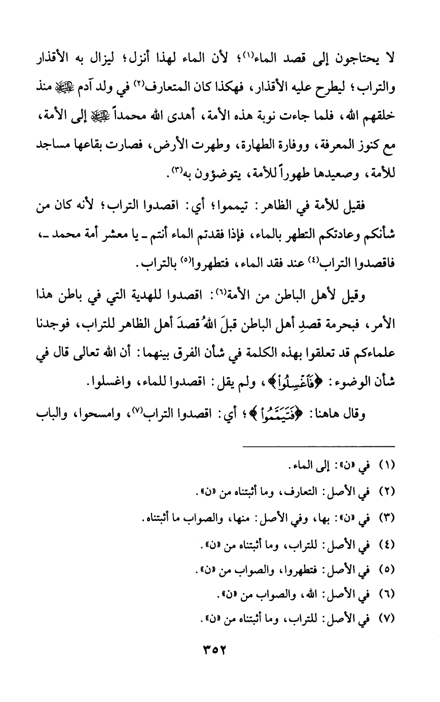 لا يحتاجون إلى قصد الماء؛ لأن الماء لهذا أنزل؛ ليزال به الأقذار والتراب؛ ليطرح عليه الأقذار، فهكذا كان المتعارف في ولد آدم عليه السلام منذ خلقهم الله، فلما جاءت نوبة هذه الأمة، أهدى الله محمداً عليه السلام إلى الأمة، مع كنوز المعرفة، ووفارة الطهارة، وطهرت الأرض، فصارت بقاعها مساجد للأمة، وصعيدها طهور للأمة، يتوضؤون به.