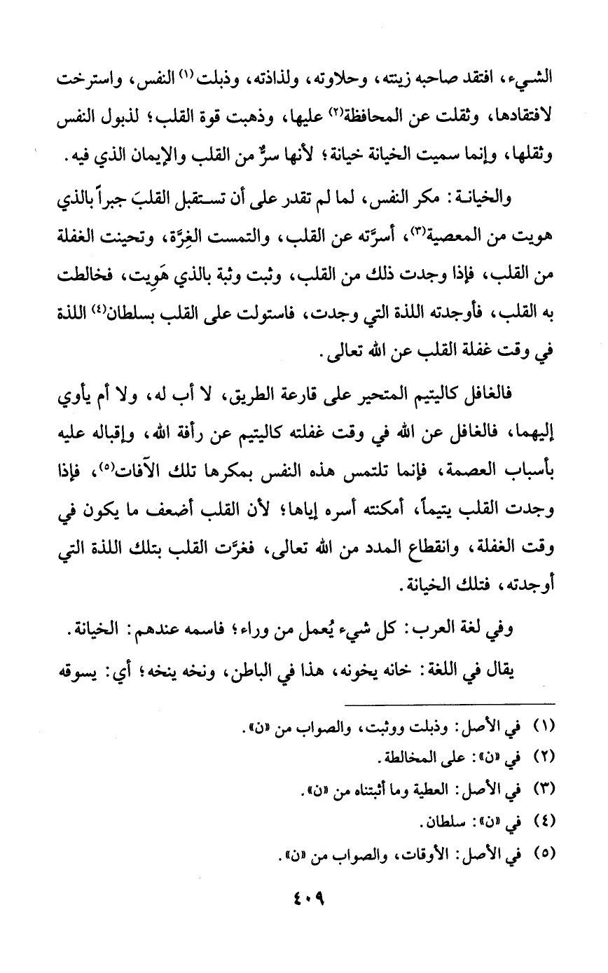 فالغافل كاليتيم المتحير على قارعة الطريق، لا أب له، ولا أم يأوي إليهما، فالغافل عن الله في وقت غفلته كاليتيم عن رأفة الله، وإقباله عليه بأسباب العصمة، فإنما تلتمس هذه النفس بمكرها تلك الآفات، فإذا وجدت القلب يتيماً، أمكنته أسره إياها؛ لأن القلب أضعف ما يكون في وقت الغفلة، وانقطاع المدد من الله تعالى، فغرت القلب بتلك اللذة التي أوجدته، فتلك الخيانة.
