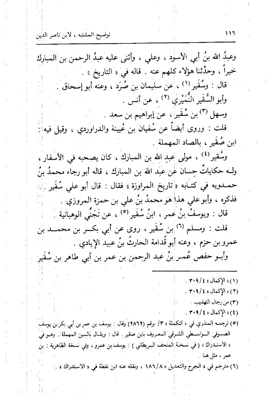 وَعبد الله بن أبي الاسود وَعلي واثنى عَلَيْهِ عبد الرَّحْمَن بن الْمُبَارك خيرا وَحدثنَا هَؤُلَاءِ كلهم عَنهُ. قَالَه فِي التَّارِيخ. قَالَ: وسقير عَن سُلَيْمَان بن صرد وَعنهُ أَبُو إِسْحَاق. وَأَبُو السقير النميري عَن أنس. وَسَهل بن سقير عَن إِبْرَاهِيم بن سعد. قلت: وروى أَيْضا عَن سُفْيَان بن عُيَيْنَة والدراوردي وَقيل فِيهِ: ابْن صقير بالصَّاد الْمُهْملَة. وسقير مولى عبد الله بن الْمُبَارك كَانَ يَصْحَبهُ فِي الاسفار وَله حكايات حسان عَن عبد الله بن الْمُبَارك قَالَه أَبُو رَجَاء مُحَمَّد بن حَمْدَوَيْه فِي كِتَابه تَارِيخ المراوزة فَقَالَ: قَالَ أَبُو عَليّ سقير. . فَذكره وَأَبُو عَليّ هَذَا هُوَ مُحَمَّد بن عَليّ بن حَمْزَة الْمروزِي. قَالَ: ويوسف بن عمر ابْن سقير عَن تجني الْوَهْبَانِيَّة. قلت: وَمُسلم بن سقير روى عَن أبي بكر بن مُحَمَّد بن عَمْرو بن حزم وَعنهُ أَبُو قدامَة الْحَارِث بن عبيد الايادي. وَأَبُو حَفْص عمر بن عبد الرَّحْمَن بن عمر بن أبي طَاهِر بن سقير