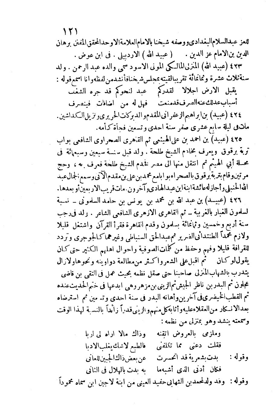 للعز عبد السَّلَام الْبَغْدَادِيّ وَوَصفه شَيخنَا بِالْإِمَامِ الْعَلامَة الأوحد الْمُحَقق المفنن برهَان الدّين بن الإِمَام عز الدّين. عبيد الله الأردبيلي. فِي ابْن عوض.