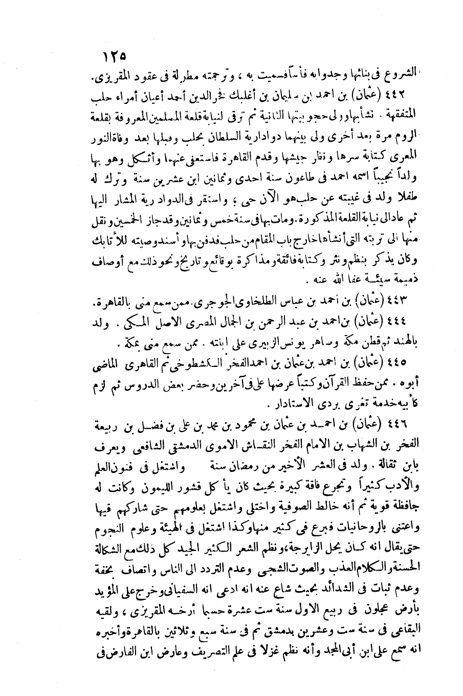 عُثْمَان بن أَحْمد بن عُثْمَان بن مَحْمُود بن مُحَمَّد بن عَليّ بن فضل بن ربيعَة الْفَخر بن الشهَاب بن الإِمَام الْفَخر النقاش الْأمَوِي الدِّمَشْقِي الشَّافِعِي وَيعرف بِابْن ثقالة ولد فِي الْعشْر الْأَخير من رَمَضَان سنة واشتغل فِي فنون الْعلم وَالْأَدب كثيرا وتجرع فاقة كَبِيرَة بِحَيْثُ كَانَ يَأْكُل قشور الليمون وَكَانَت لَهُ حافظة قَوِيَّة ثمَّ أَنه خالط الصُّوفِيَّة واختلى واشتغل بعلومهم حَتَّى شاركهم فِيهَا واعتنى بالروحانيات فبرع فِي كثير مِنْهَا وَكَذَا اشْتغل فِي الْهَيْئَة وعلوم النُّجُوم حَتَّى يُقَال)