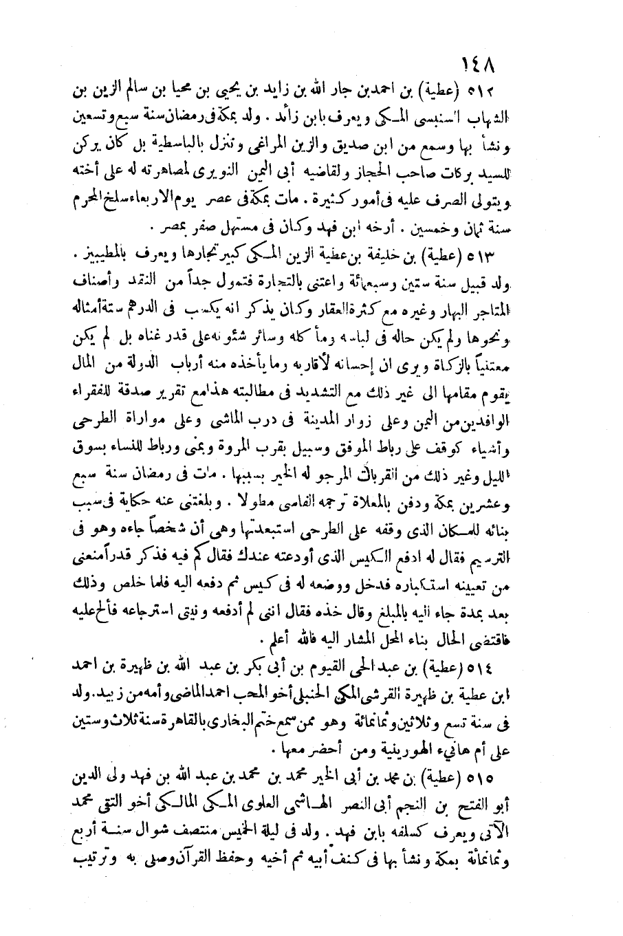 عَطِيَّة بن أَحْمد بن جَار الله بن زايد بن يحيى بن محيا بن سَالم الزين بن الشهَاب السنبسي الْمَكِّيّ وَيعرف بِابْن زَائِد. ولد بِمَكَّة فِي رَمَضَان سنة سبع وَتِسْعين وَنَشَأ بهَا وَسمع من ابْن صديق والزين المراغي وتنزل بالباسطية بل كَانَ يركن للسَّيِّد بركان صَاحب الْحجاز ولقاضيه أبي الْيمن النويري لمصاهرته لَهُ على أُخْته ويتولى الصّرْف عَلَيْهِ فِي أُمُور كَثِيرَة. مَاتَ بِمَكَّة فِي عصر يَوْم الْأَرْبَعَاء سلخ الْمحرم سنة ثَمَان وَخمسين. أرخه ابْن فَهد وَكَانَ فِي مستهل صفر بِمصْر.)