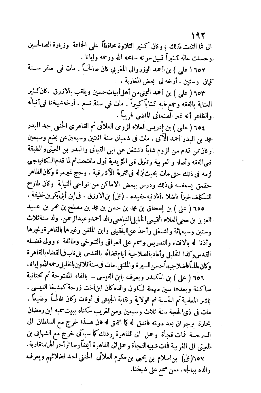 عَليّ بن إِدْرِيس الْعَلَاء الرُّومِي العلائي ثمَّ القاهري الْحَنَفِيّ جد الْبَدْر مُحَمَّد بن الْبَدْر أَحْمد الْآتِي. مَاتَ فِي شعْبَان سنة اثْنَتَيْنِ وَسبعين عَن بضع وَسبعين وَكَانَ مِمَّن قدم من الرّوم شَابًّا فاشتغل عَن ابْن القباني والبدر بن الْعَيْنِيّ والطبقة فِي الْفِقْه وَأَصله والعربية وتنزل فِي المؤيدية أول مَا فتحت ثمَّ لما قدم الكافياجي لزمَه فِي ذَلِك حَتَّى مَاتَ بِحَيْثُ نزله فِي التربة الأشرفية.