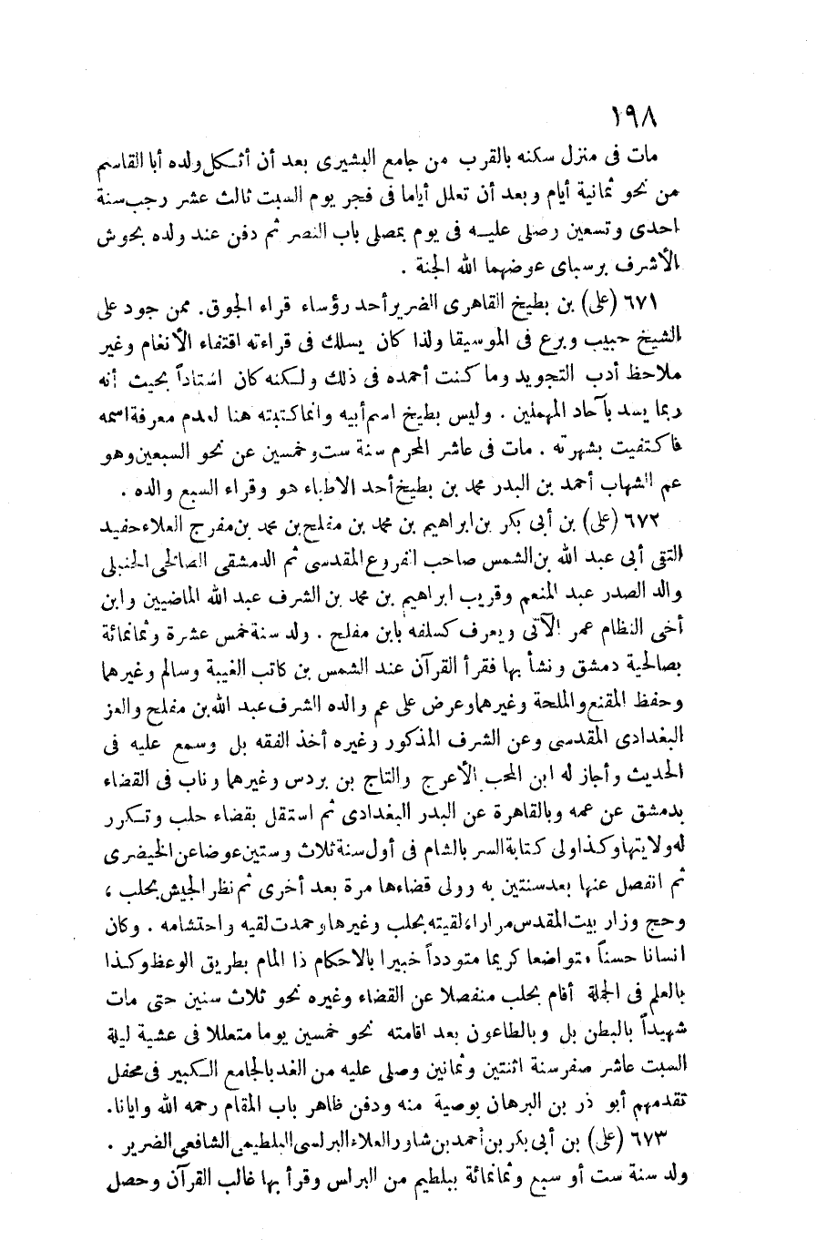 وَإِنَّمَا كتبته هُنَا لعدم معرفَة اسْمه فاكتفيت بشهرته. مَاتَ فِي عَاشر الْمحرم سنة سِتّ وَخمسين عَن نَحْو السّبْعين وَهُوَ عَم الشهَاب أَحْمد بن الْبَدْر مُحَمَّد بن بطيخ أحد الْأَطِبَّاء هُوَ وقراء السَّبع وَالِده.