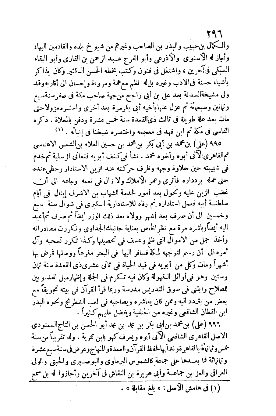 وَأَبُو البقائي السُّبْكِيّ فِي آخَرين، واشتغل فِي فنون وَكتب بِخَطِّهِ الْحسن الْكثير وَكَانَ يذاكر بأَشْيَاء حَسَنَة فِي الْأَدَب وَغَيره بل لَهُ نظم مَعَ همة ومروءة وإحسان إِلَى أَقَاربه وَقد ولي مشيخة السَّدَنَة بعد عَليّ بن أبي رَاجِح بن جِهَة صَاحب مَكَّة فِي صفر سنة سبع وَثَمَانِينَ وَسَبْعمائة ثمَّ عزل عَنْهَا بأَخيه أبي بكر مرّة بعد أُخْرَى وَاسْتمرّ معزولا حَتَّى مَاتَ بعد عِلّة طَوِيلَة فِي ثَالِث ذِي الْقعدَة سنة خمس عشرَة وَدفن بالمعلاة. ذكره الفاسي فِي مَكَّة ثمَّ ابْن فَهد فِي مُعْجَمه وَاخْتَصَرَهُ شَيخنَا فِي إنبائه.
