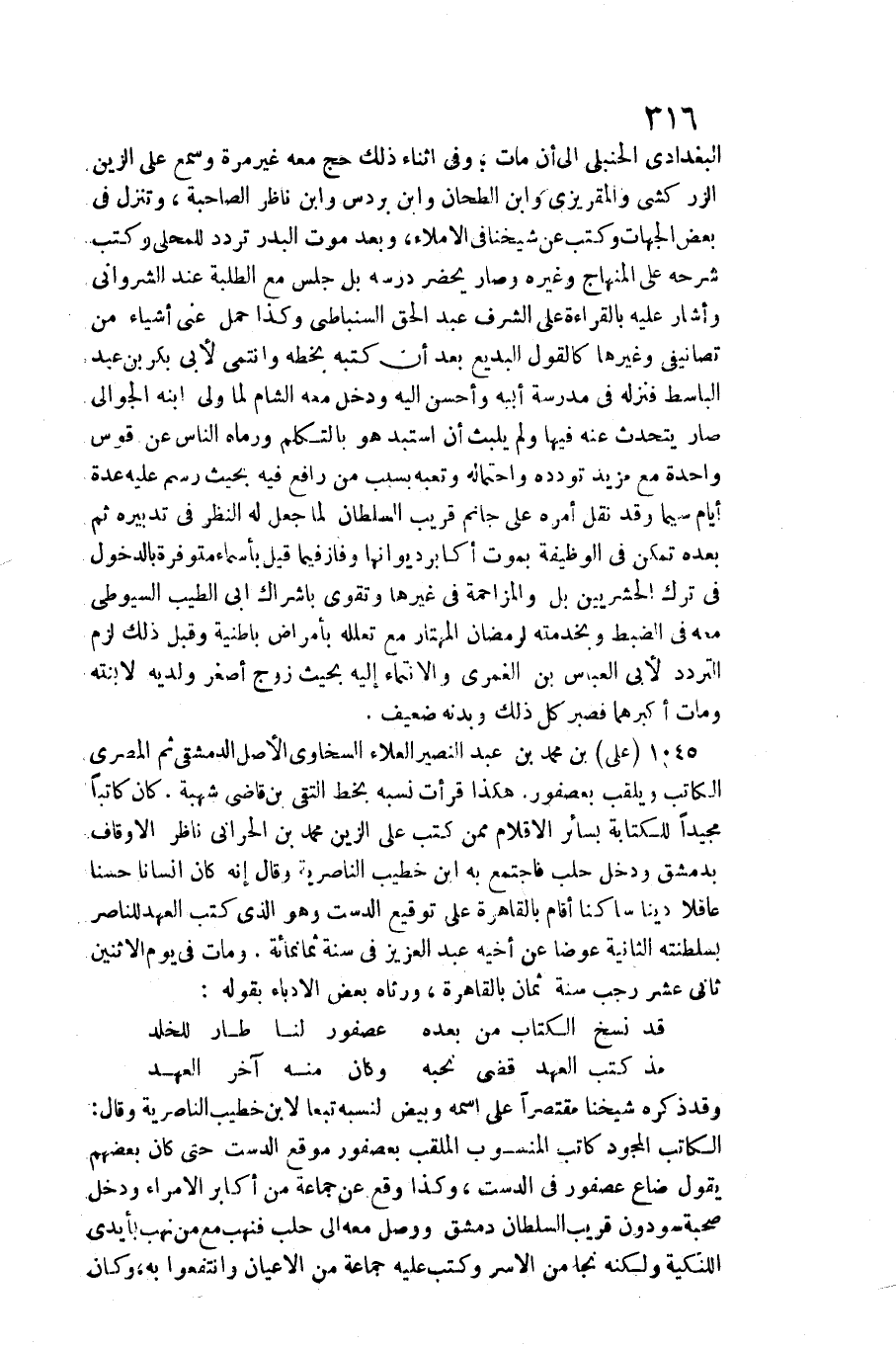 فِي بعض الْجِهَات وَكتب عَن شَيخنَا فِي الْإِمْلَاء، وَبعد موت الْبَدْر تردد للمحلي وَكتب شَرحه على الْمِنْهَاج وَغَيره وَصَارَ يحضر درسه بل جلس مَعَ الطّلبَة عِنْد الشرواني وَأَشَارَ عَلَيْهِ بِالْقِرَاءَةِ على الشّرف عبد الْحق السنباطي وَكَذَا حمل عني أَشْيَاء من تصانيفي وَغَيرهَا كالقول البديع بعد أَن كتبه بِخَطِّهِ وانتمى لأبي بكر بن عبد الباسط فنزله فِي مدرسة أَبِيه وَأحسن إِلَيْهِ وَدخل مَعَه الشَّام لما ولى ابْنه الجوالي صَار يتحدث عَنهُ فِيهَا وَلم يلبث أَن استبد هُوَ بالتكلم ورماه النَّاس عَن قَوس وَاحِدَة مَعَ مزِيد تودده واحتماله وتعبه بِسَبَب من رَافع فِيهِ بِحَيْثُ رسم عَلَيْهِ عدَّة أَيَّام سِيمَا وَقد نقل أمره على جانم قريب السُّلْطَان لما جعل لَهُ النّظر فِي تَدْبيره ثمَّ بعده تمكن فِي الْوَظِيفَة بِمَوْت أكَابِر ديوانها وفاز فِيمَا قيل بأسماء متوفرة بِالدُّخُولِ فِي ترك الحشريين بل والمزاحمة فِي غَيرهَا وتقوى بإشراك أبي الطّيب السُّيُوطِيّ مَعَه فِي الضَّبْط وبخدمته لرمضان المهتار مَعَ تعلله بأمراض باطنية وَقبل ذَلِك لزم التَّرَدُّد لأبي الْعَبَّاس بن الغمري والانتماء إِلَيْهِ بِحَيْثُ زوج أَصْغَر ولديه لابنته وَمَات أكبرهما فَصَبر كل ذَلِك وبدنه ضَعِيف.