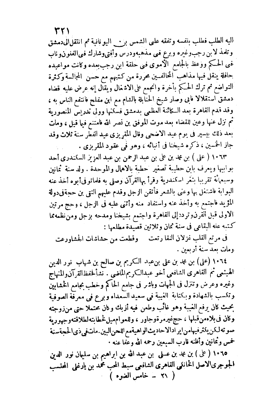 إِلَيْهِ الطّلب بِنَفسِهِ وتفقه على الشَّمْس بن اليونانية ثمَّ انْتقل إِلَى دمشق وتلمذ لبن رَجَب وَغَيره وبرع فِي مذْهبه ودرس وَأفْتى وشارك فِي الْفُنُون وناب فِي الحكم وَوعظ بالجامع الْأمَوِي فِي حَلقَة ابْن رَجَب بعده وَكَانَت مواعيده حافلة ينْقل فِيهَا مَذَاهِب الْمُخَالفين محررة من كتبهمْ مَعَ حسن المجالسة وَكَثْرَة التَّوَاضُع ثمَّ ترك الحكم بِأخرَة وانجمع على الِاشْتِغَال وَيُقَال إِنَّه عرض عَلَيْهِ قَضَاء دمشق اسْتِقْلَالا فَأبى وَصَارَ شيخ الْحَنَابِلَة بِالشَّام مَعَ ابْن مُفْلِح فَانْتَفع النَّاس بِهِ، وَقد قدم الْقَاهِرَة بعد الكائنة الْعُظْمَى بِدِمَشْق فسكنها وَولي تدريس المنصورية ثمَّ نزل عَنْهَا وَعين للْقَضَاء بعد موت الْمُوفق بن نصر الله فَامْتنعَ فِيمَا قيل، وَمَات بعد ذَلِك بِيَسِير فِي يَوْم عيد الْأَضْحَى وَقَالَ المقريزي عيد الْفطر سنة ثَلَاث وَقد جَازَ الْخمسين، ذكره شَيخنَا فِي أنبائه، وَهُوَ فِي عُقُود المقريزي.