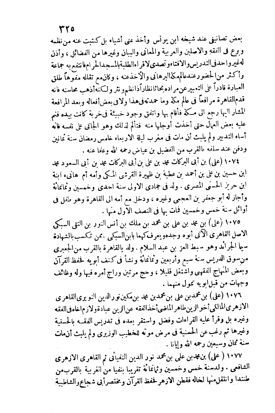 بعض تصانيفي عَن شَيْخه ابْن يُونُس وَأخذ عني أَشْيَاء بل كتبت عَنهُ من نظمه وبرع فِي الْفِقْه والأصلين والعربية والمعاني وَالْبَيَان وَغَيرهَا من الْفَضَائِل، وَأذن لَهُ غير وَأحد فِي التدريس والإفتاء وتصدى لإقراء الطّلبَة بِالْمَسْجِدِ الْحَرَام فَانْتَفع بِهِ جمَاعَة وَأكْثر من الْحُضُور عِنْد عَالم مَكَّة البرهاني وَالْأَخْذ عَنهُ، وَكَانَ مَعَ تقلله مفوها طلق الْعبارَة قَادِرًا على التَّعْبِير عَن مُرَاده بحاثا نظارا ذَا نظم ونثر وَلكنه أذهب محاسنه فَإِنَّهُ قدم الْقَاهِرَة مرافعا فِي عَالم مَكَّة وَمَا حمدته فِي هَذَا وَلَا فِي بعض أَفعاله وَبعد المرافعة الْمشَار إِلَيْهَا رَجَعَ إِلَى مَكَّة فَأَقَامَ بهَا وَاتفقَ وجود خبيئة فِي خربة كَانَت بِيَدِهِ فنم عَلَيْهِ بعض الْعمَّال حَتَّى أخذت أَو جلها مِنْهُ فتألم لذَلِك وَهُوَ الْجَانِي على نَفسه فَإِنَّهُ أَسَاءَ التَّدْبِير وَلم يلبث أَن مَاتَ فِي مغرب لَيْلَة الْأَرْبَعَاء خَامِس رَمَضَان سنة ثَمَانِينَ وَدفن عِنْد سلفه بِالْقربِ من الفضيل بن عِيَاض رَحمَه الله وَعَفا عَنهُ.