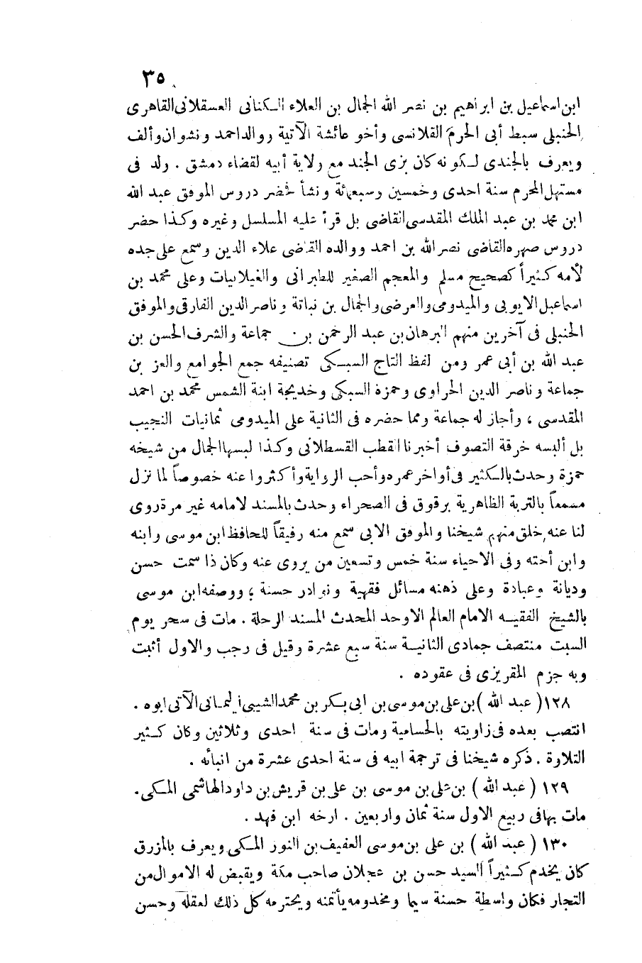 بن إِسْمَاعِيل ابْن إِبْرَاهِيم بن نصر الله الْجمال بن الْعَلَاء الْكِنَانِي الْعَسْقَلَانِي القاهري الْحَنْبَلِيّ سبط أبي الْحرم القلانسي وأخو عَائِشَة الْآتِيَة ووالد أَحْمد ونشوان وَألف وَيعرف بالجندي لكَونه كَانَ بزِي الْجند مَعَ ولَايَة أَبِيه لقَضَاء دمشق. ولد فِي مستهل الْمحرم سنة إِحْدَى وَخمسين وَسَبْعمائة وَنَشَأ فَحَضَرَ دروس الْمُوفق عبد الله بن مُحَمَّد بن عبد الْملك الْمَقْدِسِي النقاضي بل قَرَأَ عَلَيْهِ المسلسل وَغَيره وَكَذَا حضر دروس صهره القَاضِي نصر الله بن أَحْمد ووالده القَاضِي عَلَاء الدّين وَسمع على جده لأمه كثيرا كصحيح مُسلم والمعجم الصَّغِير للطبراني والغيلابيات وعَلى مُحَمَّد بن إِسْمَاعِيل الأيوبي والميدومي والعرضي وَالْجمال بن نباتة وناصر الدّين الفارقي والموفق الْحَنْبَلِيّ فِي آخَرين مِنْهُم الْبُرْهَان بن عبد الرَّحْمَن بن جمَاعَة والشرف الْحسن بن عبد الله بن أبي عمر وَمن لفظ التَّاج السُّبْكِيّ تصنيفه جمع الْجَوَامِع والعز بن جمَاعَة وناصر الدّين الحراوي وَحَمْزَة السُّبْكِيّ وَخَدِيجَة ابْنة الشَّمْس مُحَمَّد بن أَحْمد الْمَقْدِسِي، وَأَجَازَ لَهُ جمَاعَة وَمِمَّا حَضَره فِي الثَّانِيَة على الْمَيْدُومِيُّ ثمانيات النجيب بل ألبسهُ خرقه التصوف أخبرنَا القطب الْقُسْطَلَانِيّ وَكَذَا لبسهَا الْجمال من شَيْخه حَمْزَة وَحدث بالكثير فِي أَوَاخِر عمره وَأحب الرِّوَايَة وَأَكْثرُوا عَنهُ)