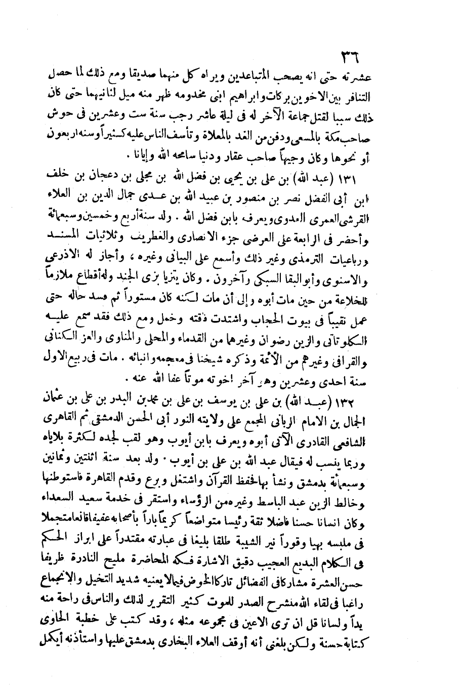 عشرته حَتَّى أَنه يصحب المتباعدين وَيَرَاهُ كل مِنْهُمَا صديقا وَمَعَ ذَلِك لما حصل التنافر بَين الْأَخَوَيْنِ بَرَكَات وَإِبْرَاهِيم ابْني مخدومه ظهر مِنْهُ ميل لثانيهما حَتَّى كَانَ ذَلِك سَببا لقتل جمَاعَة الآخر لَهُ فِي لَيْلَة عَاشر رَجَب سنة سِتّ وَعشْرين فِي حوش صَاحب مَكَّة بالمسعى وَدفن من الْغَد بالمعلاة وتأسف النَّاس عَلَيْهِ كثيرا وسنه أَرْبَعُونَ أَو نَحْوهَا وَكَانَ وجيها صَاحب عقار وَدُنْيا سامحه الله وإيانا.