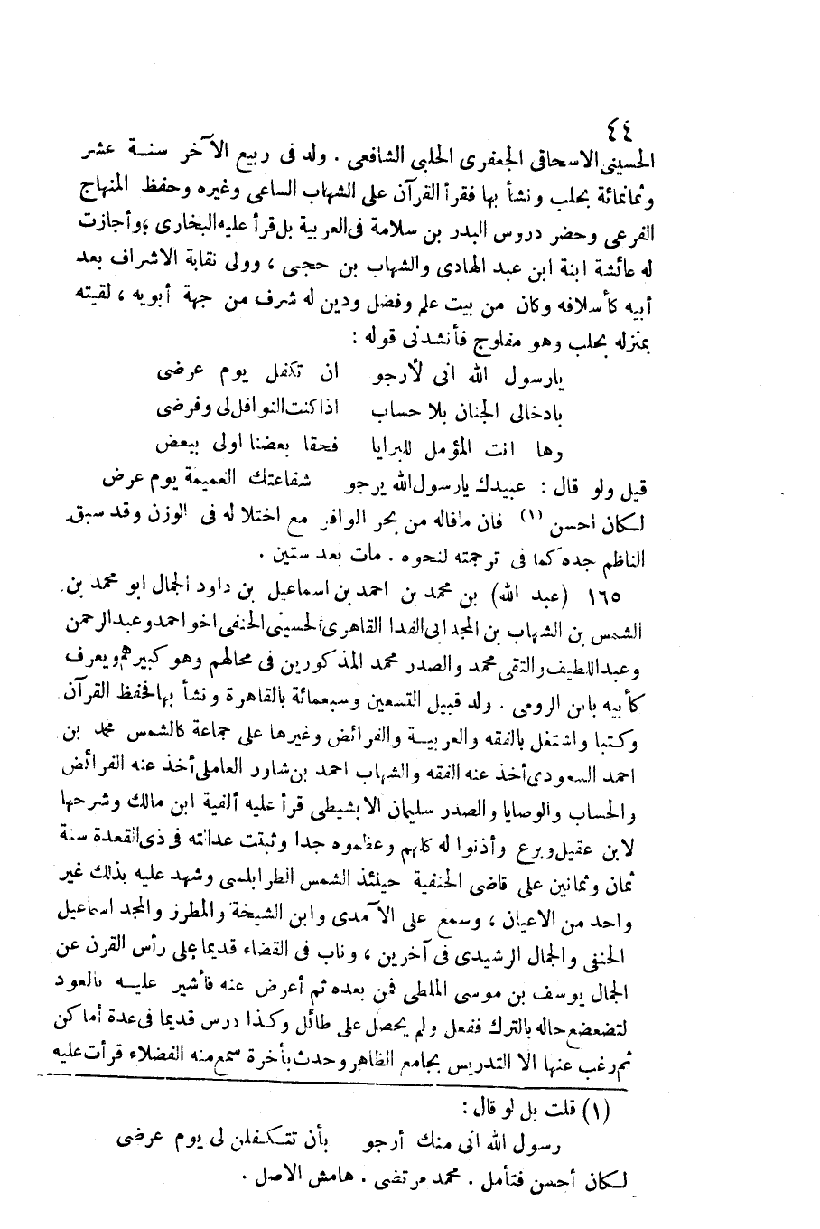 الْحُسَيْنِي الإسحاقي الْجَعْفَرِي الْحلَبِي الشَّافِعِي. ولد)