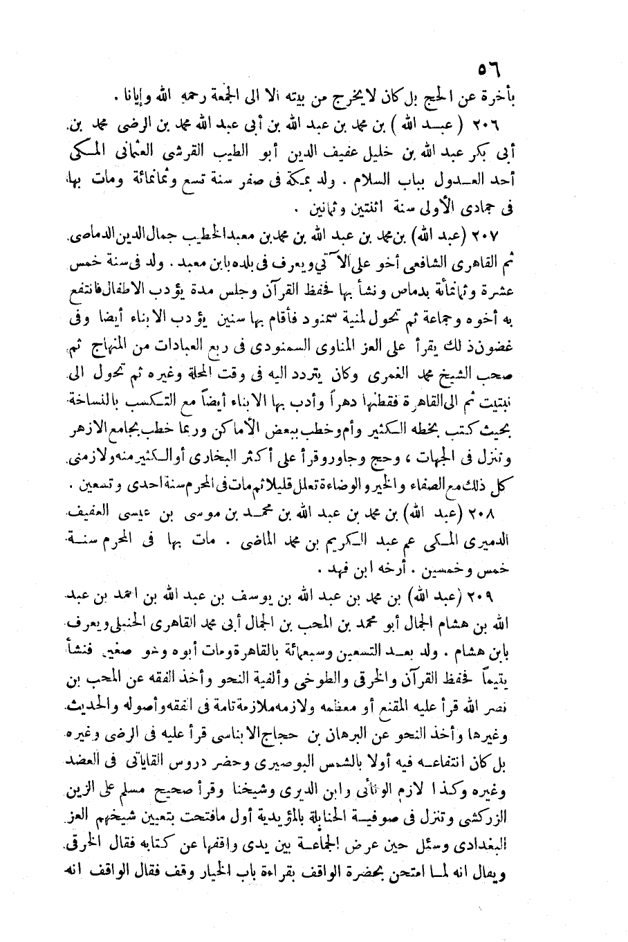 عبد الله بن مُحَمَّد بن عبد الله بن أبي عبد الله مُحَمَّد بن الرضي مُحَمَّد بن أبي بكر عبد الله بن خَلِيل عفيف الدّين أَبُو الطّيب الْقرشِي العثماني الْمَكِّيّ أحد الْعُدُول بِبَاب السَّلَام. ولد بِمَكَّة فِي صفر سنة تسع وَثَمَانمِائَة وَمَات بهَا فِي جُمَادَى الأولى سنة اثْنَتَيْنِ وَثَمَانِينَ.
