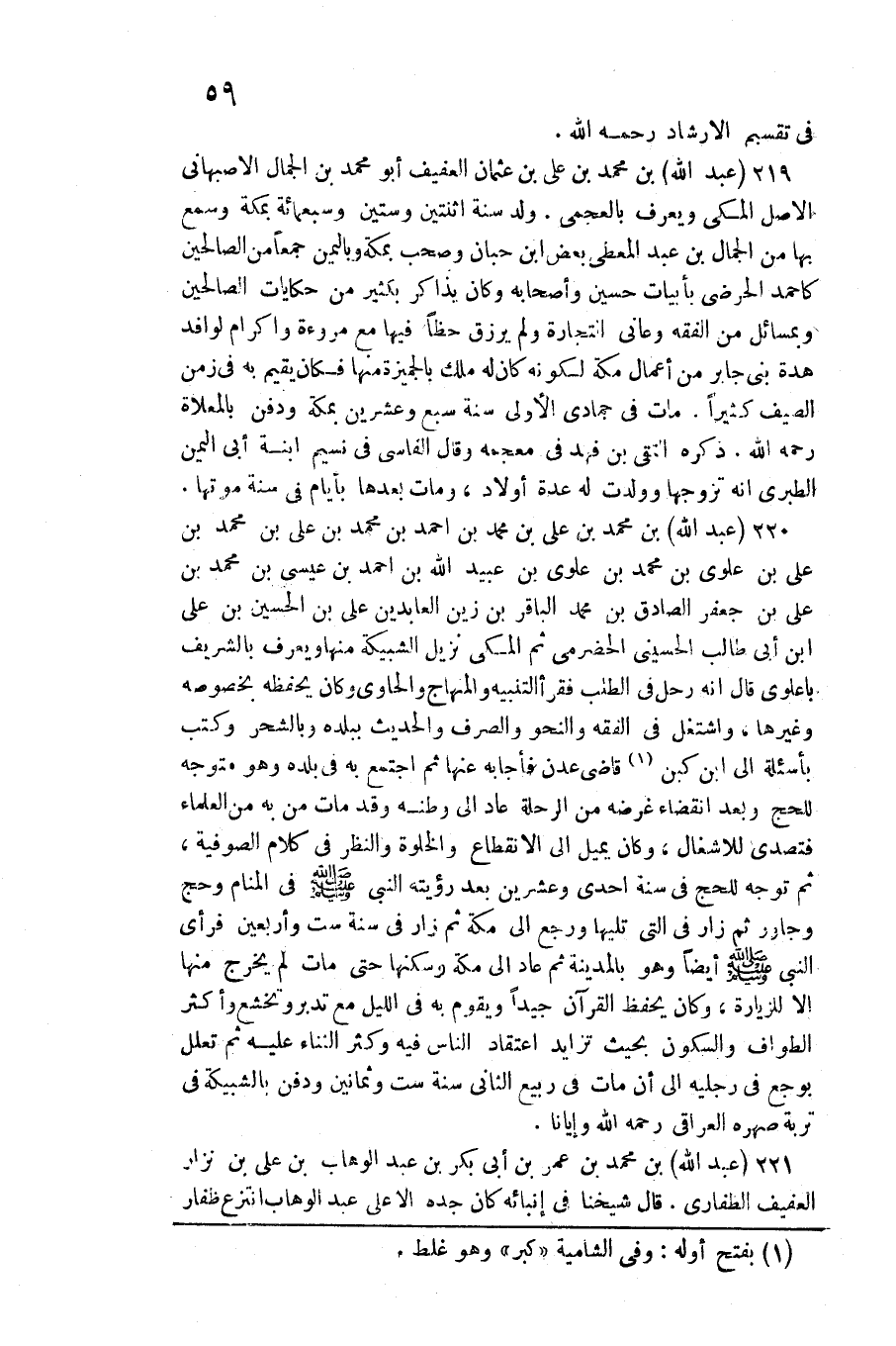عبد الله بن مُحَمَّد بن عَليّ بن عُثْمَان الْعَفِيف أَبُو مُحَمَّد بن الْجمال الإصبهاني الأَصْل الْمَكِّيّ وَيعرف بالعجمي. ولد سنة اثْنَتَيْنِ وَسِتِّينَ وَسَبْعمائة بِمَكَّة وَسمع بهَا من الْجمال بن عبد الْمُعْطِي بعض ابْن حَيَّان وَصَحب بِمَكَّة وباليمن جمعا من الصَّالِحين كأحمد الحرضي بِأَبْيَات حُسَيْن وَأَصْحَابه وَكَانَ يذاكر بِكَثِير من حكايات الصَّالِحين وبمسائل من الْفِقْه وعانى التِّجَارَة وَلم يرْزق حظا فِيهَا مَعَ مُرُوءَة وأكرام لوافد هدة بني جَابر من أَعمال مَكَّة لكَونه كَانَ لَهُ ملك بالجميزة مِنْهَا فَكَانَ يُقيم بِهِ فِي زمن الصَّيف كثيرا. مَاتَ فِي جُمَادَى الأولى سنة سبع وَعشْرين)