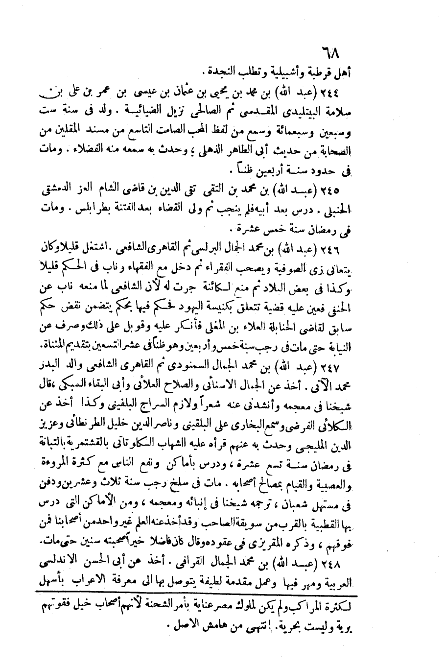 عبد الله بن مُحَمَّد الْجمال الْقَرَافِيّ. أَخذ عَن أبي الْحسن الأندلسي الْعَرَبيَّة وَمهر فِيهَا وَعمل مُقَدّمَة لَطِيفَة يتَوَصَّل بهَا إِلَى معرفَة الْإِعْرَاب بأسل