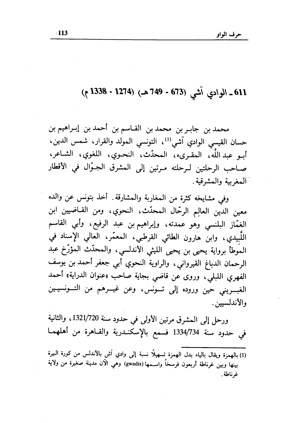 611 - الوادي آشي (673 - 749 هـ) (1274 - 1338 م)