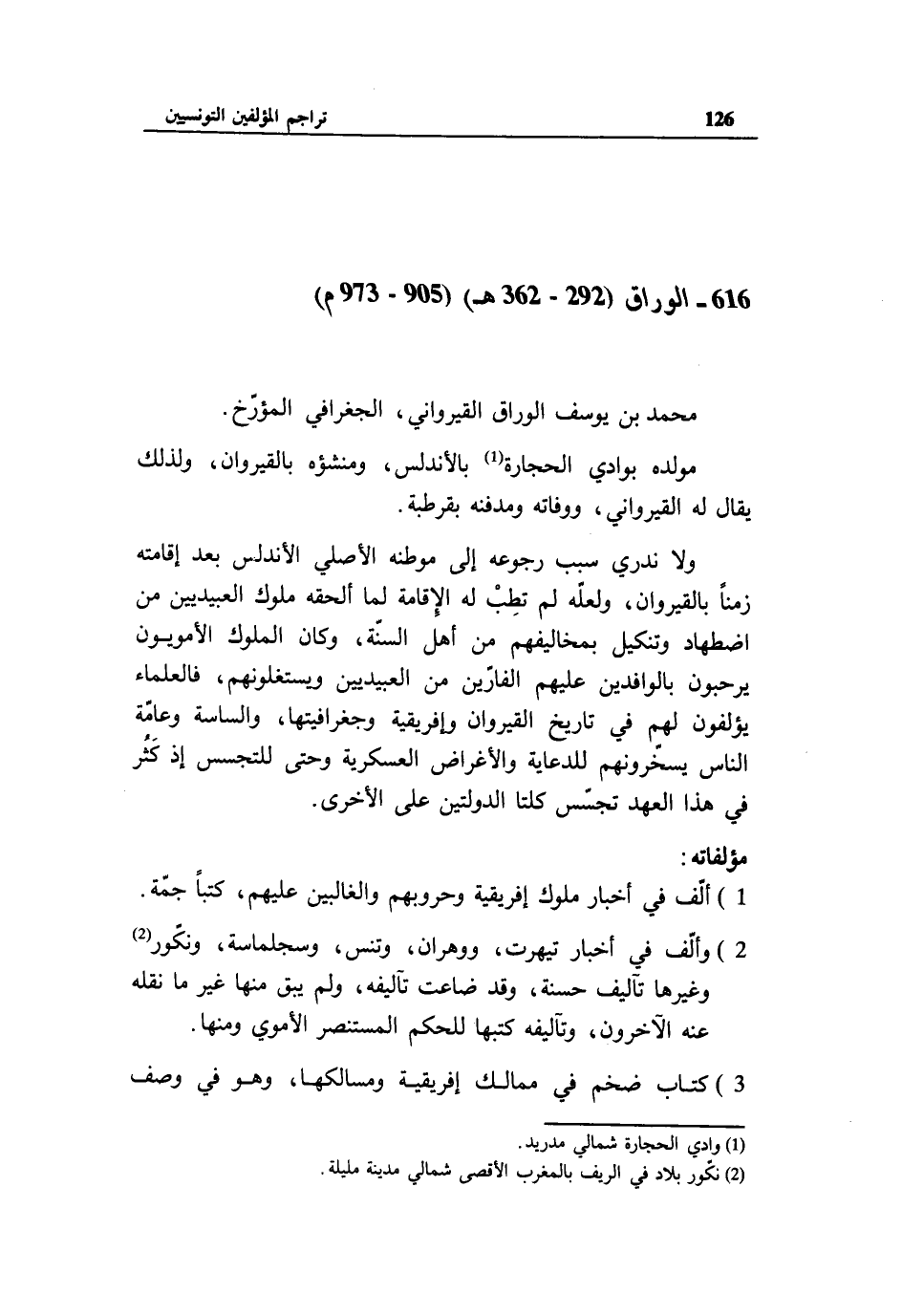محمد بن يوسف الوراق القيرواني، الجغرافي المؤرّخ.