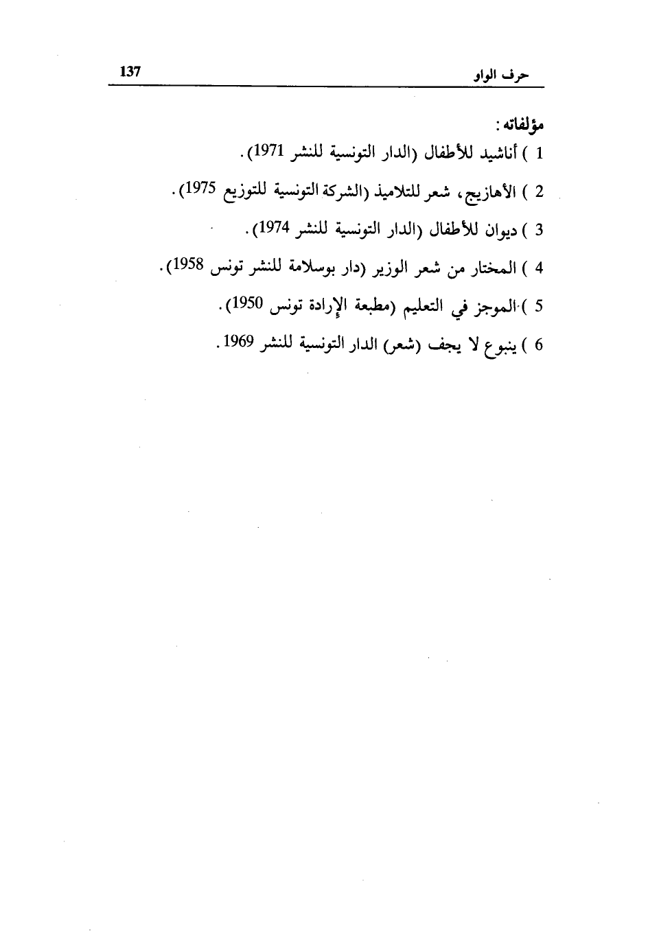 1) أناشيد للأطفال (الدار التونسية للنشر 1971).