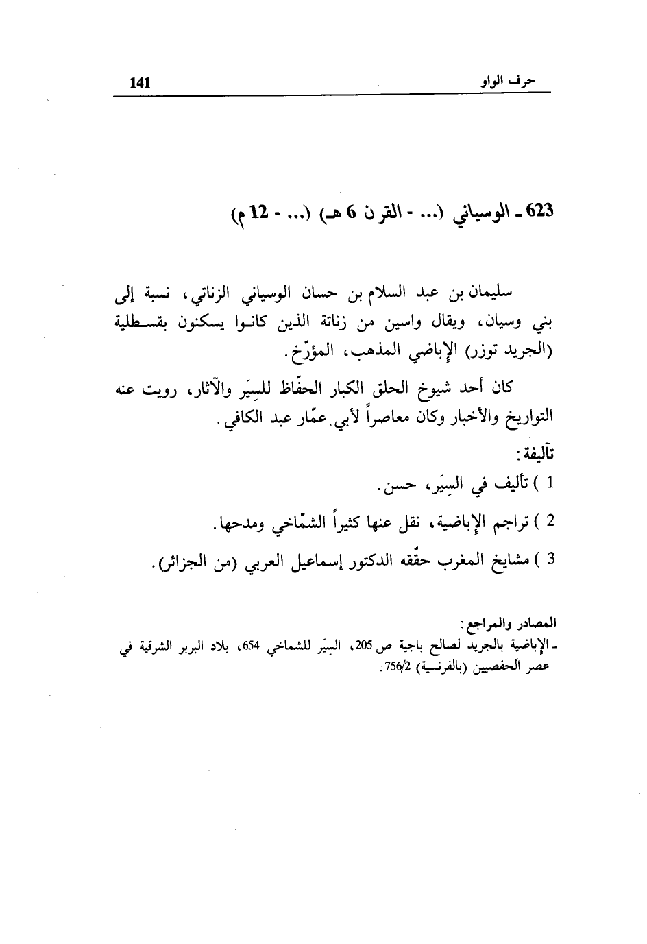 - الإباضية بالجريد لصالح باجية ص 205، السير للشماخي 654، بلاد البربر الشرقية في عصر الحفصيين (بالفرنسية) 2/ 756.