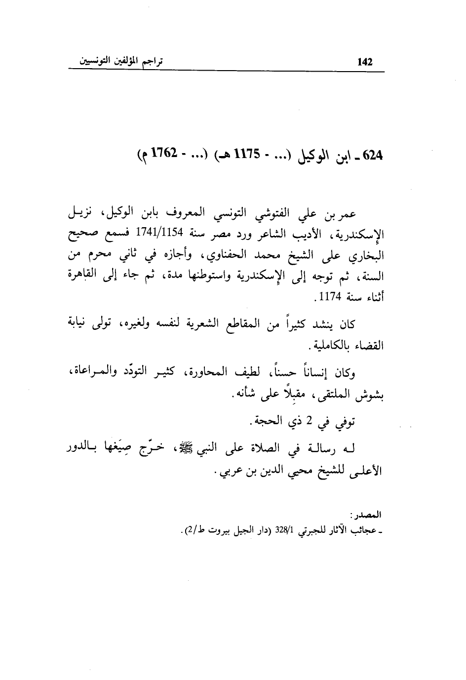 624 - ابن الوكيل ( ... - 1175 هـ) ( ... - 1762 م)