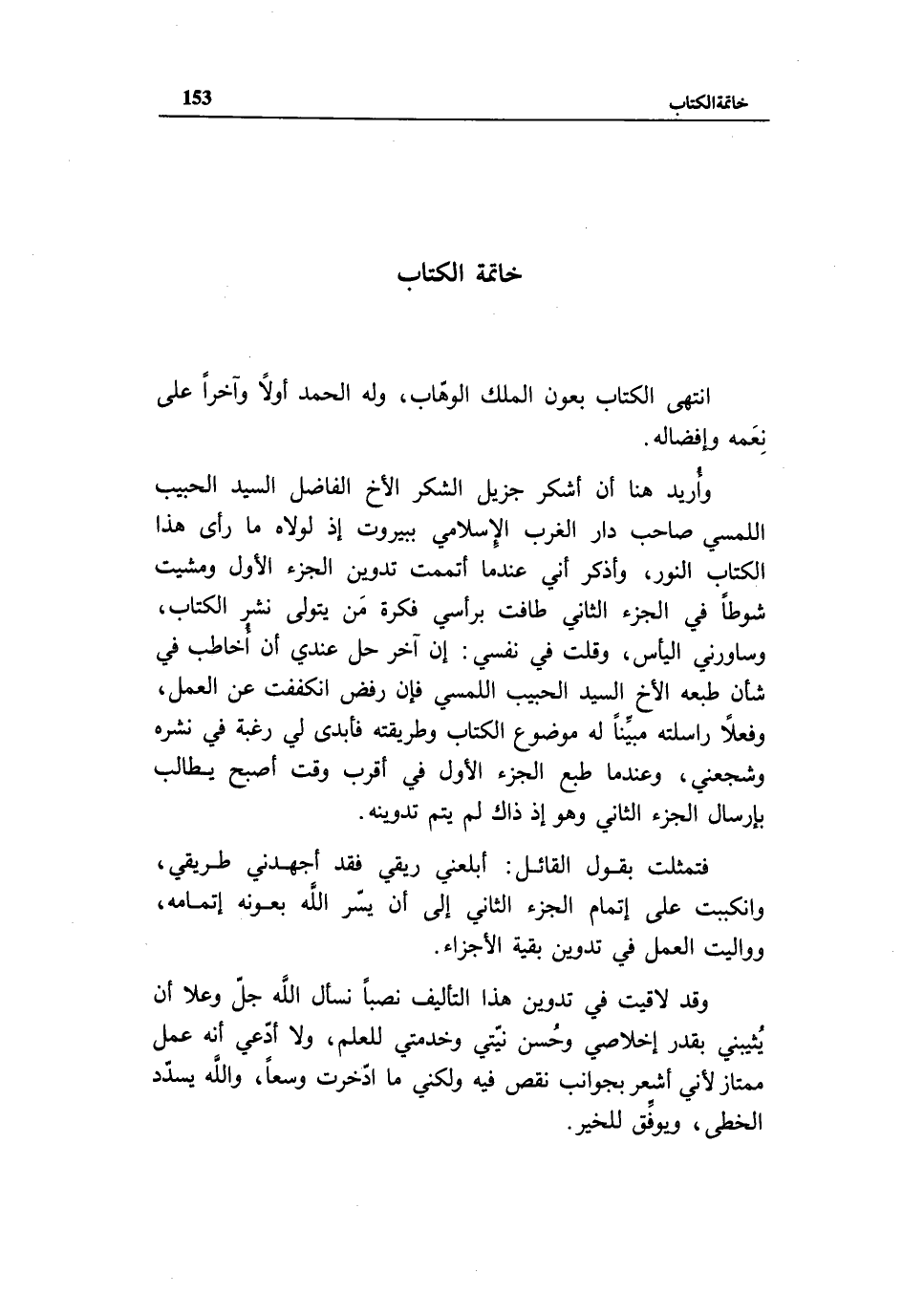 وأريد هنا أن أشكر جزيل الشكر الأخ الفاضل السيد الحبيب اللمسي صاحب دار الغرب الإسلامي ببيروت إذ لولاه ما رأى هذا الكتاب النور، وأذكر أني عند ما أتممت تدوين الجزء الأول ومشيت شوطا في الجزء الثاني طافت برأسي فكرة من يتولى نشر الكتاب، وساورني اليأس، وقلت في نفسي: إن آخر حل عندي أن أخاطب في شأن طبعه الأخ السيد الحبيب اللمسي فإن رفض انكففت عن العمل، وفعلا راسلته مبيّنا له موضوع الكتاب وطريقته فأبدى لي رغبة في نشره وشجعني، وعند ما طبع الجزء الأول في أقرب وقت أصبح يطالب بإرسال الجزء الثاني وهو إذ ذاك لم يتم تدوينه.