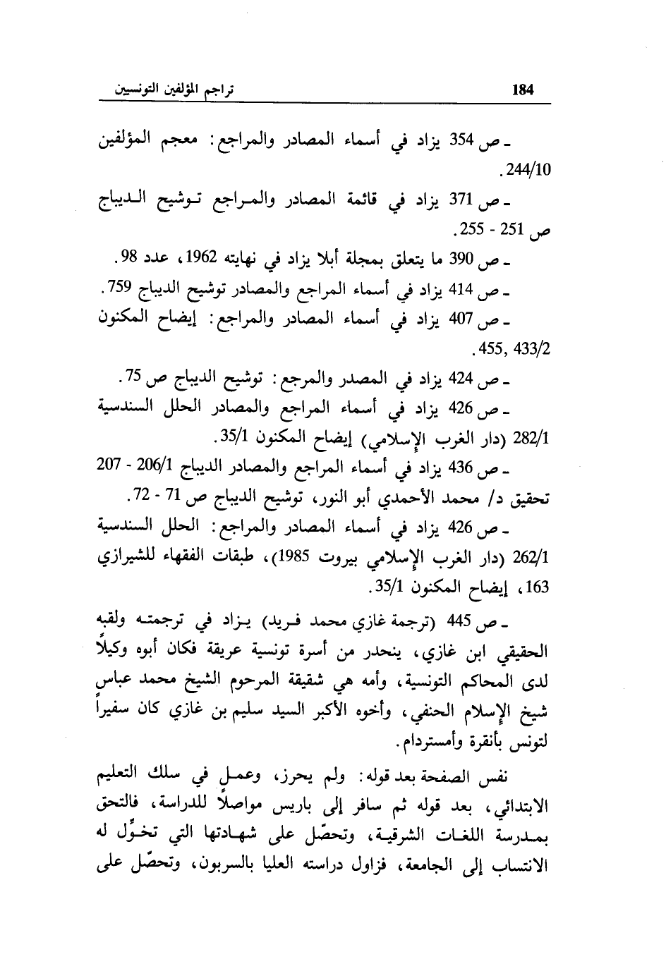 - ص 426 يزاد في أسماء المراجع والمصادر الحلل السندسية 1/ 282 (دار الغرب الإسلامي) إيضاح المكنون 1/ 35.