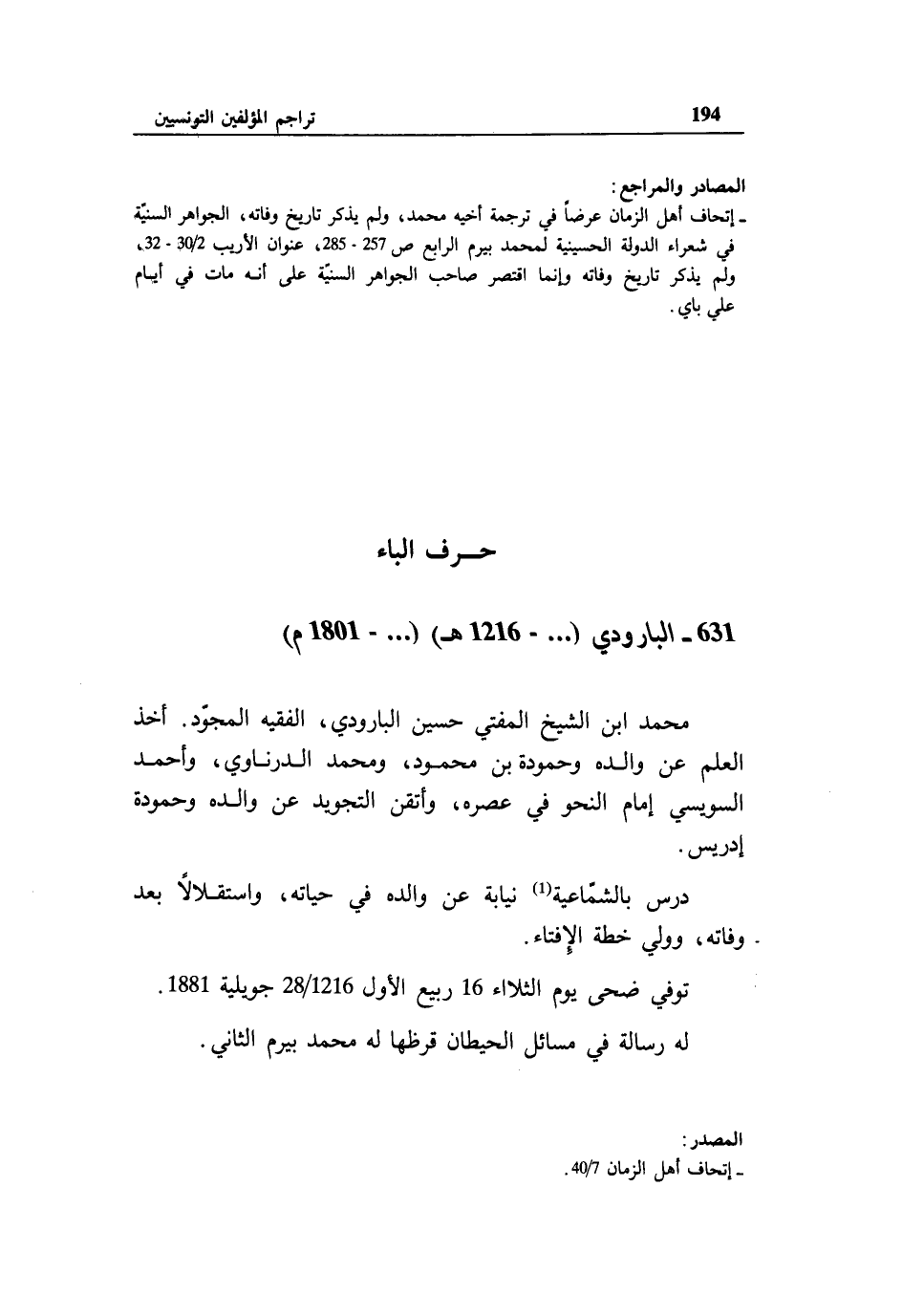 631 - البارودي ( ... - 1216 هـ) ( ... - 1801 م)
