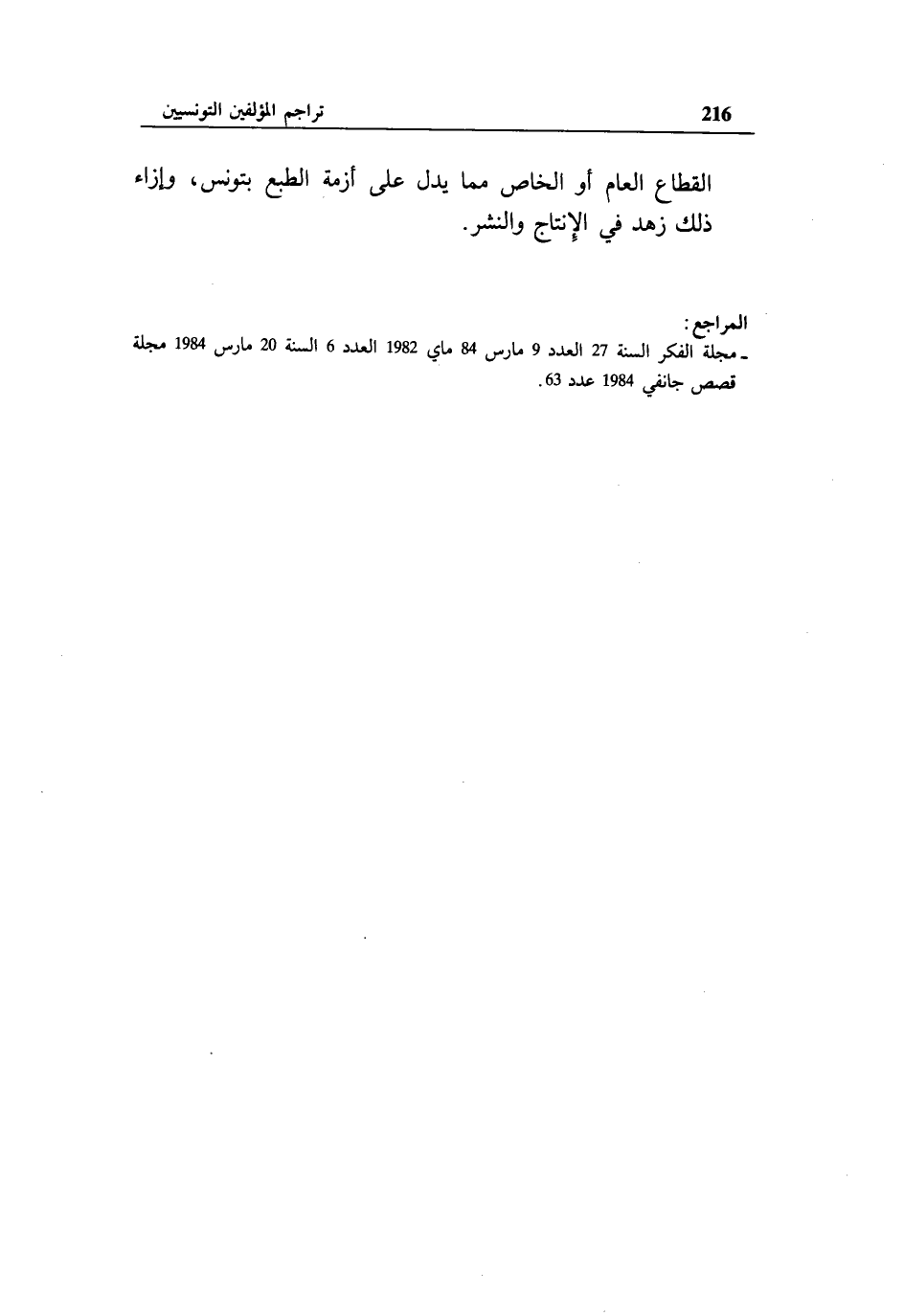 القطاع العام أو الخاص مما يدل على أزمة الطبع بتونس، وإزاء ذلك زهد في الإنتاج والنشر.