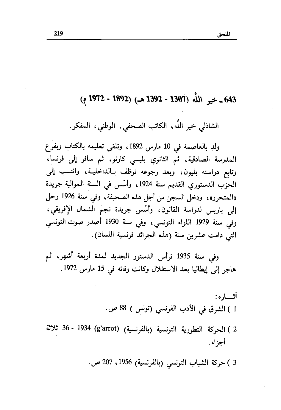 3) حركة الشباب التونسي (بالفرنسية) 1956، 207 ص.