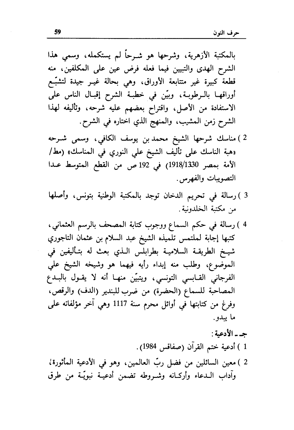 3) رسالة في تحريم الدخان توجد بالمكتبة الوطنية بتونس، وأصلها من مكتبة الخلدونية.