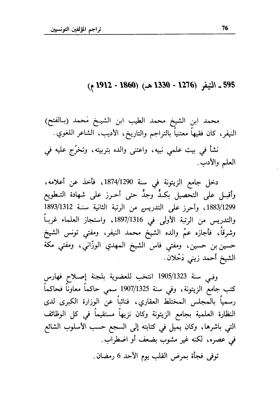 محمد ابن الشيخ محمد الطيب ابن الشيخ محمد (بالفتح) النيفر، كان فقيها معتنيا بالتراجم والتاريخ، الأديب، الشاعر اللغوي.