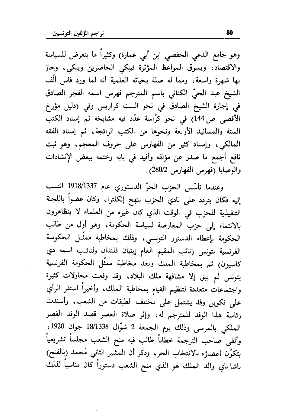 وهو جامع الدعي الحفصي ابن أبي عمارة) وكثيرا ما يتعرض للسياسة والاقتصاد، ويسوق المواعظ المؤثرة فيبكي الحاضرين ويبكي، وحاز بها شهرة واسعة، ومما له صلة بحياته العلمية أنه لما ورد فاس ألّف الشيخ عبد الحيّ الكتاني باسم المترجم فهرس اسمه الفجر الصادق في إجازة الشيخ الصادق في نحو الست كراريس وفي (دليل مؤرخ الأقصى ص 144) في نحو كرّاسة عدّد فيه مشايخه ثم إسناد الكتب الستة والمسانيد الأربعة ونحوها من الكتب الرائجة، ثم إسناد الفقه المالكي، وإسناد كثير من الفهارس على حروف المعجم، وهو ثبت نافع أجمع ما صدر عن مؤلفه وأفيد في بابه وختمه ببعض الإنشادات والوصايا (فهرس الفهارس 2/ 280).