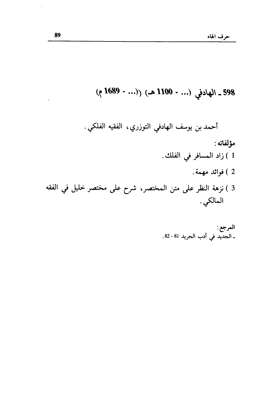 598 - الهادفي ( ... - 1100 هـ) ( ... - 1689 م)