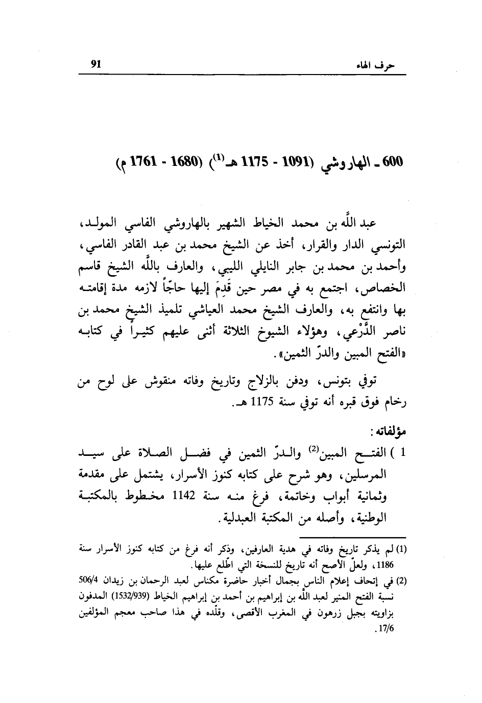 600 - الهاروشي (1091 - 1175 هـ) (¬1) (1680 - 1761 م)