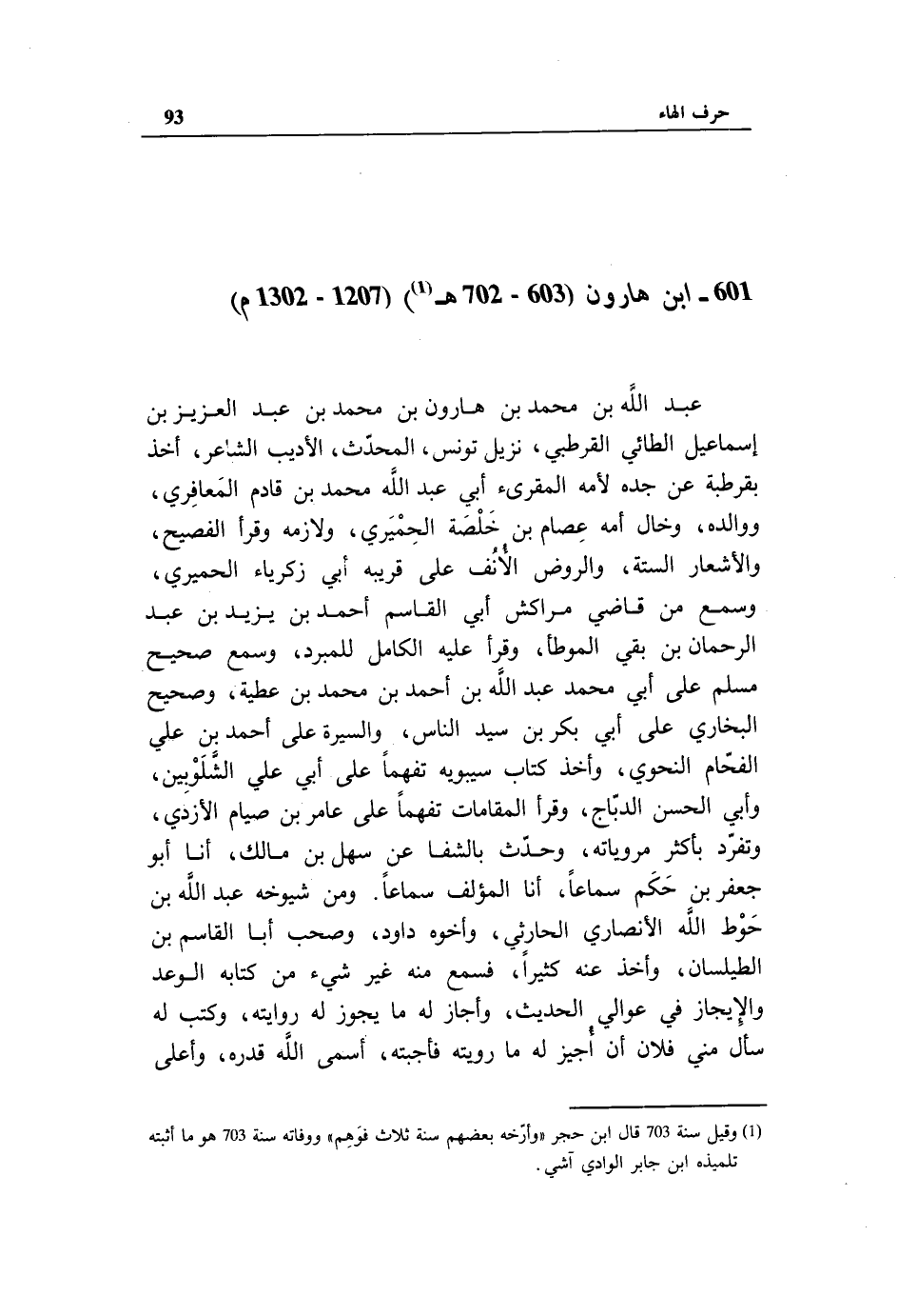 601 - ابن هارون (603 - 702 هـ) (¬1) (1207 - 1302 م)