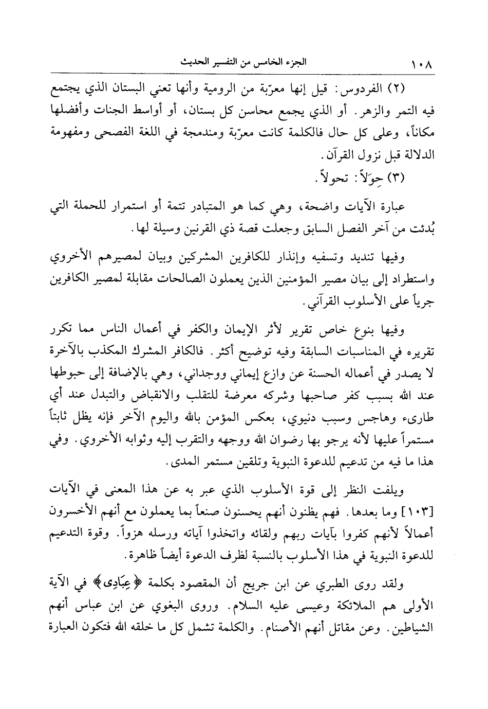 (2) الفردوس: قيل إنها معرّبة من الرومية وأنها تعني البستان الذي يجتمع فيه التمر والزهر. أو الذي يجمع محاسن كل بستان، أو أواسط الجنات وأفضلها مكانا، وعلى كل حال فالكلمة كانت معرّبة ومندمجة في اللغة الفصحى ومفهومة الدلالة قبل نزول القرآن.