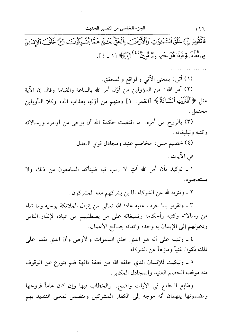 5- وتبكيت للإنسان الذي خلقه الله من نطفة تافهة فلم يتورع عن الوقوف منه موقف الخصم العنيد والمجادل المكابر.
