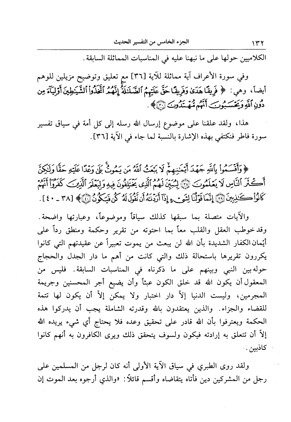 وَأَقْسَمُوا بِاللَّهِ جَهْدَ أَيْمانِهِمْ لا يَبْعَثُ اللَّهُ مَنْ يَمُوتُ بَلى وَعْداً عَلَيْهِ حَقًّا وَلكِنَّ أَكْثَرَ النَّاسِ لا يَعْلَمُونَ (38) لِيُبَيِّنَ لَهُمُ الَّذِي يَخْتَلِفُونَ فِيهِ وَلِيَعْلَمَ الَّذِينَ كَفَرُوا أَنَّهُمْ كانُوا كاذِبِينَ (39) إِنَّما قَوْلُنا لِشَيْءٍ إِذا أَرَدْناهُ أَنْ نَقُولَ لَهُ كُنْ فَيَكُونُ (40)