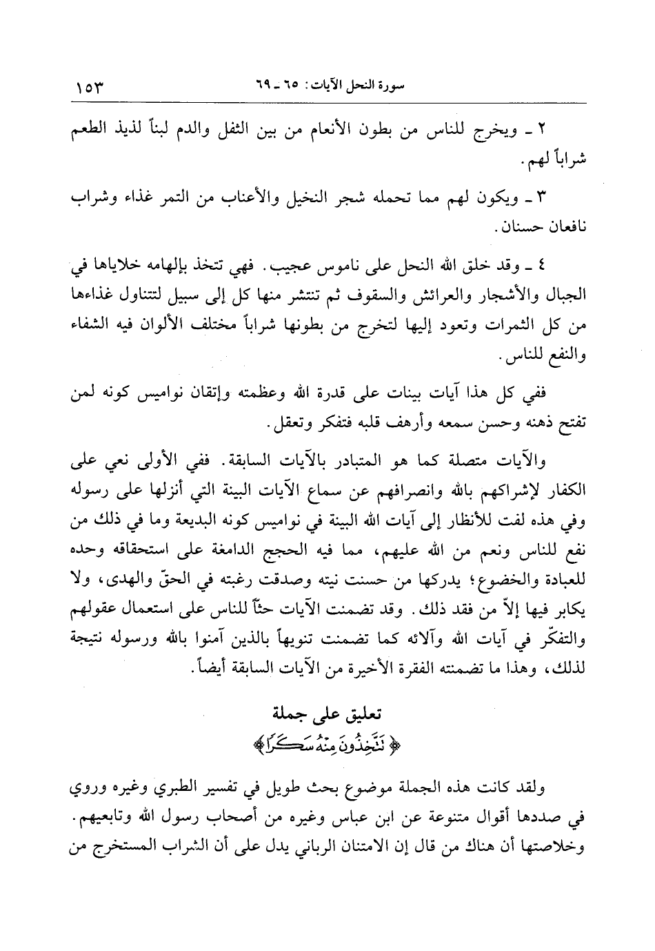 تعليق على جملة تَتَّخِذُونَ مِنْهُ سَكَراً