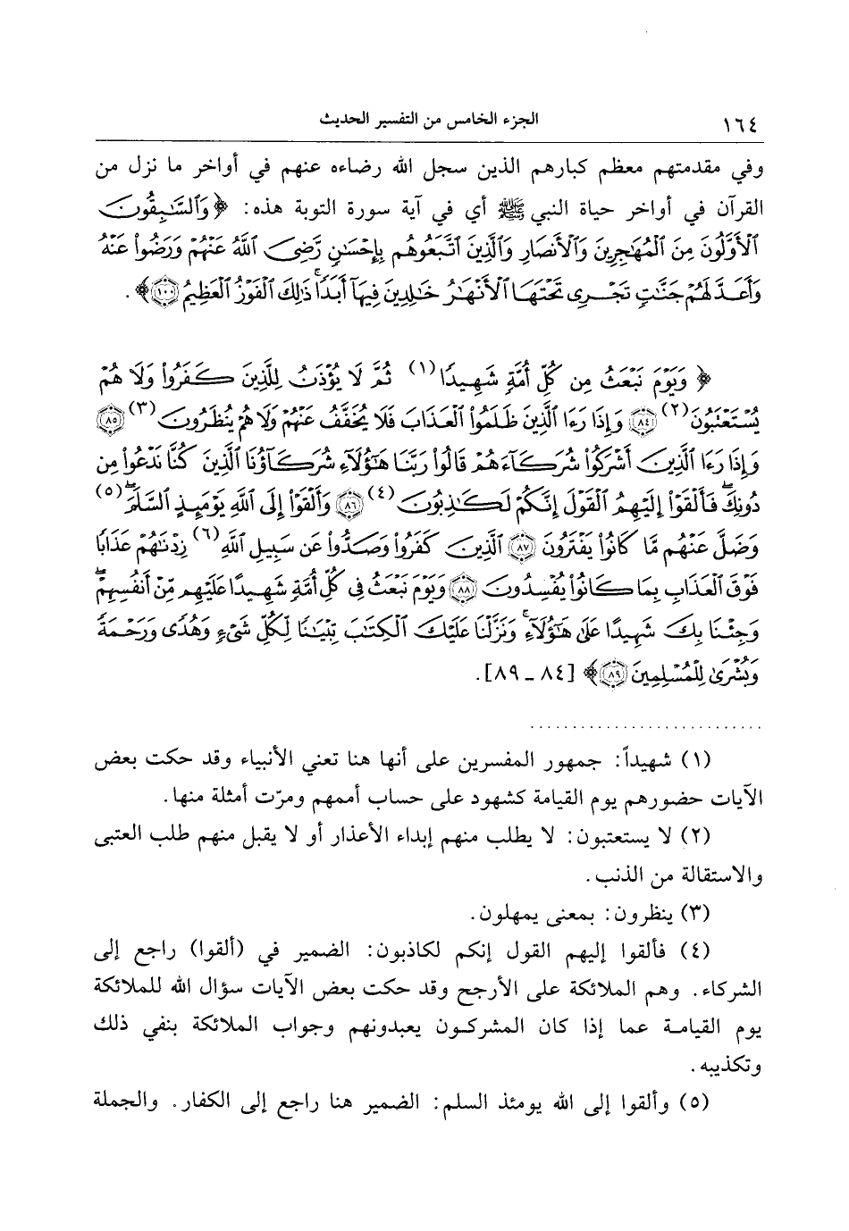 وَيَوْمَ نَبْعَثُ فِي كُلِّ أُمَّةٍ شَهِيداً عَلَيْهِمْ مِنْ أَنْفُسِهِمْ وَجِئْنا بِكَ شَهِيداً عَلى هؤُلاءِ وَنَزَّلْنا عَلَيْكَ الْكِتابَ تِبْياناً لِكُلِّ شَيْءٍ وَهُدىً وَرَحْمَةً وَبُشْرى لِلْمُسْلِمِينَ (89)