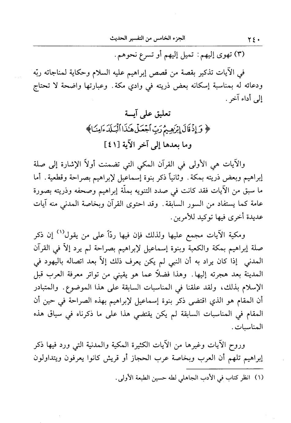 وروح الآيات وغيرها من الآيات الكثيرة المكية والمدنية التي ورد فيها ذكر إبراهيم تلهم أن العرب وبخاصة عرب الحجاز أو قريش كانوا يعرفون ويتداولون