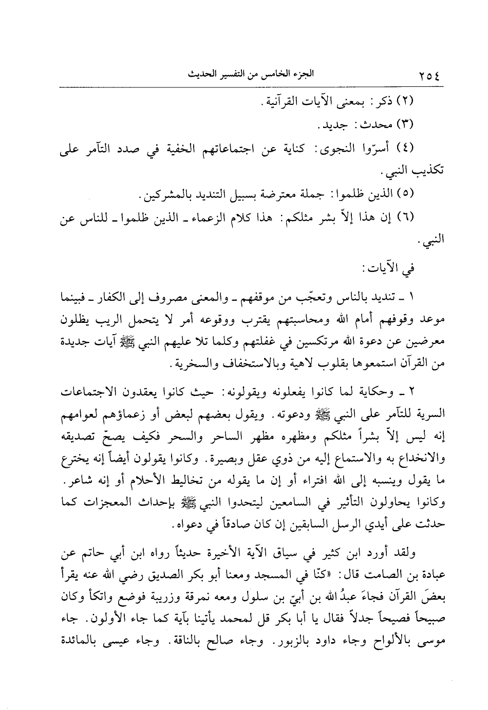 ولقد أورد ابن كثير في سياق الآية الأخيرة حديثا رواه ابن أبي حاتم عن عبادة بن الصامت قال: «كنّا في المسجد ومعنا أبو بكر الصديق رضي الله عنه يقرأ بعض القرآن فجاء عبد الله بن أبيّ بن سلول ومعه نمرقة وزريبة فوضع واتكأ وكان صبيحا فصيحا جدلا فقال يا أبا بكر قل لمحمد يأتينا بآية كما جاء الأولون. جاء موسى بالألواح وجاء داود بالزبور. وجاء صالح بالناقة. وجاء عيسى بالمائدة