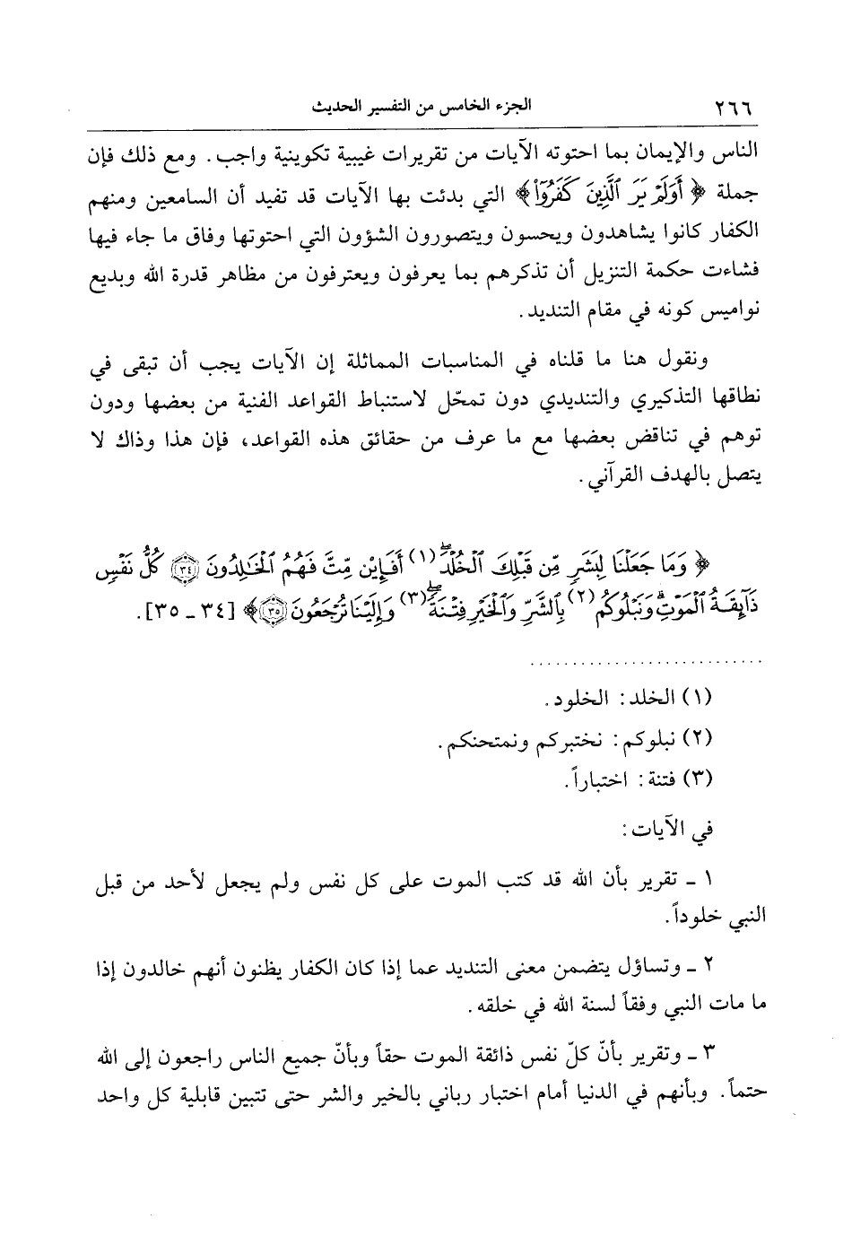 3- وتقرير بأنّ كلّ نفس ذائقة الموت حقا وبأنّ جميع الناس راجعون إلى الله حتما. وبأنهم في الدنيا أمام اختبار رباني بالخير والشر حتى تتبين قابلية كل واحد
