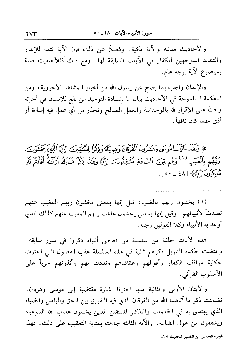 وَلَقَدْ آتَيْنا مُوسى وَهارُونَ الْفُرْقانَ وَضِياءً وَذِكْراً لِلْمُتَّقِينَ (48) الَّذِينَ يَخْشَوْنَ رَبَّهُمْ بِالْغَيْبِ وَهُمْ مِنَ السَّاعَةِ مُشْفِقُونَ (49) وَهذا ذِكْرٌ مُبارَكٌ أَنْزَلْناهُ أَفَأَنْتُمْ لَهُ مُنْكِرُونَ (50)
