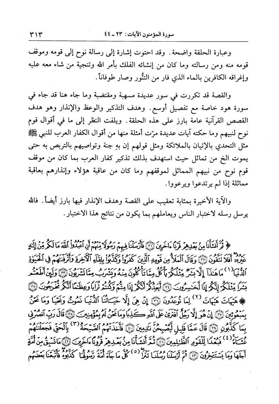 وعبارة الحلقة واضحة. وقد احتوت إشارة إلى رسالة نوح إلى قومه وموقف قومه منه ومن رسالته وما كان من إنشائه الفلك بأمر الله وتنجية من شاء معه عليه وإغراقه الكافرين بالماء الذي فار من التنّور وصار طوفانا.
