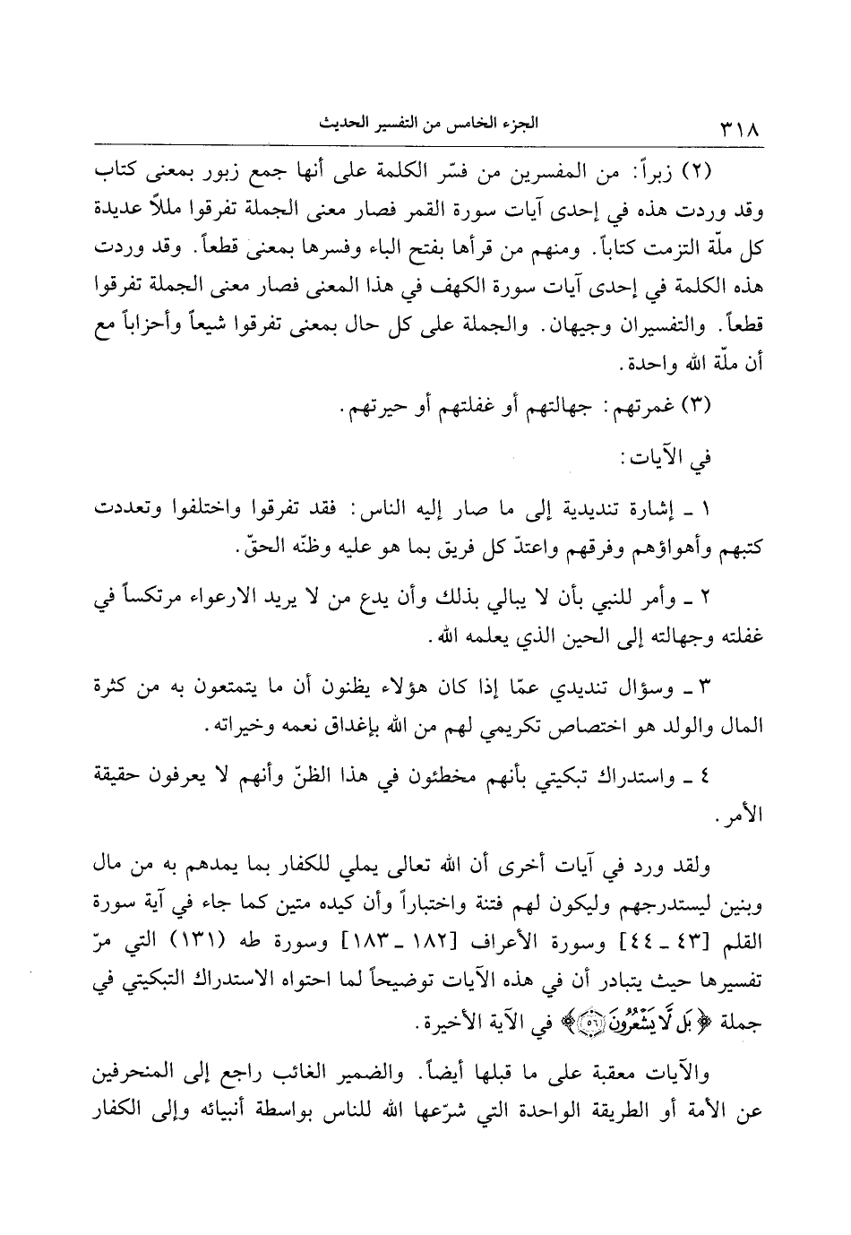 (2) زبرا: من المفسرين من فسّر الكلمة على أنها جمع زبور بمعنى كتاب وقد وردت هذه في إحدى آيات سورة القمر فصار معنى الجملة تفرقوا مللا عديدة كل ملّة التزمت كتابا. ومنهم من قرأها بفتح الباء وفسرها بمعنى قطعا. وقد وردت هذه الكلمة في إحدى آيات سورة الكهف في هذا المعنى فصار معنى الجملة تفرقوا قطعا. والتفسيران وجيهان. والجملة على كل حال بمعنى تفرقوا شيعا وأحزابا مع أن ملّة الله واحدة.