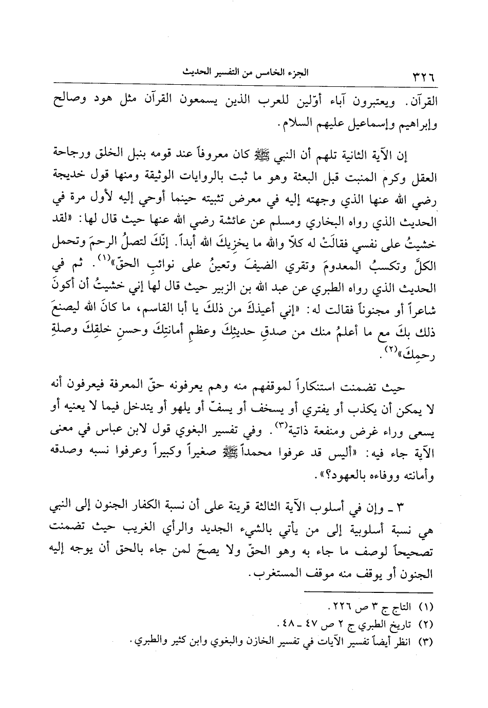 3- وإن في أسلوب الآية الثالثة قرينة على أن نسبة الكفار الجنون إلى النبي هي نسبة أسلوبية إلى من يأتي بالشيء الجديد والرأي الغريب حيث تضمنت تصحيحا لوصف ما جاء به وهو الحقّ ولا يصحّ لمن جاء بالحق أن يوجه إليه الجنون أو يوقف منه موقف المستغرب.